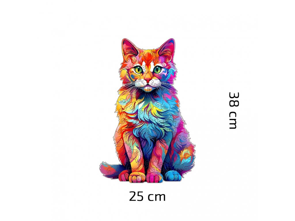 Dopřejte si kombinaci zábavy, umění a vzdělání s naším dřevěným puzzle Barevná kočka. Každý kus je pečlivě vyřezáván laserem do přesných tvarů, které přinášejí nejen radost ze skládání, ale i krásnou dekoraci pro váš domov. S rozměry 25x38 cm se tyto puzzle stávají okamžitě výrazným kouskem ve vašem interiéru.