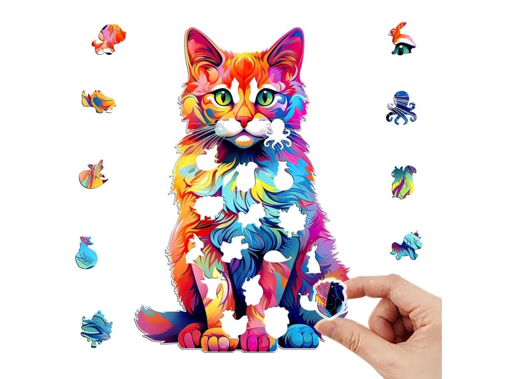 Dřevěné Puzzle Barevná kočka - Zábava, učení i dekorace v jednom