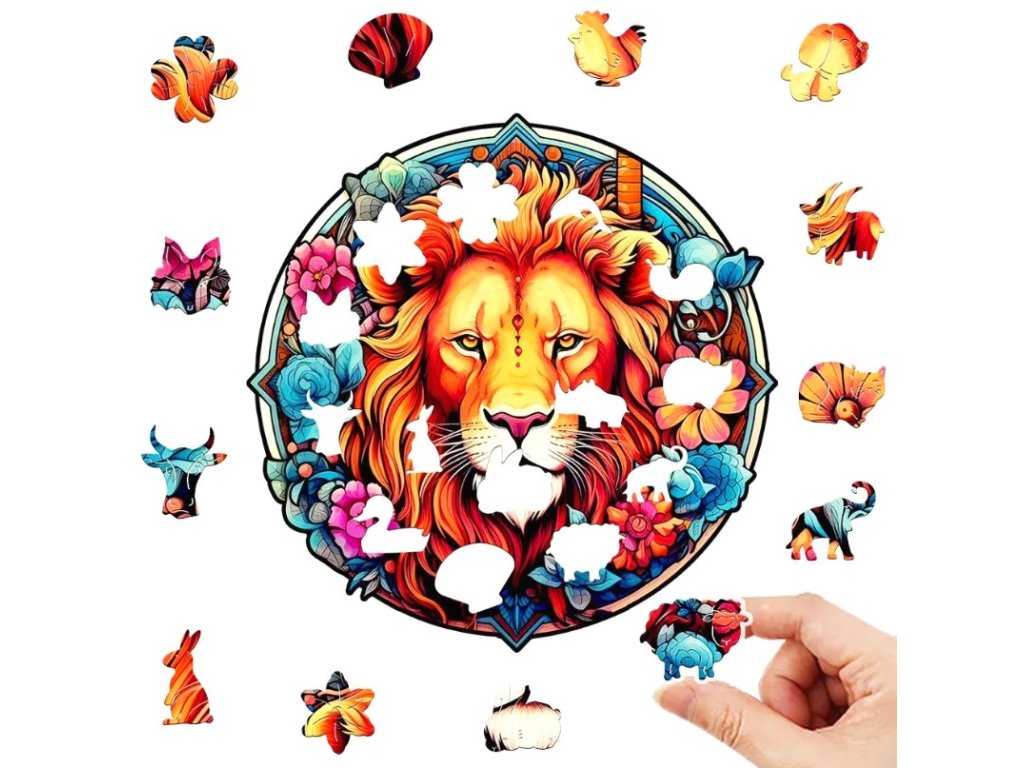 Dopřejte si kombinaci zábavy, umění a vzdělání s naším dřevěným puzzle Květinový lev. Každý kus je pečlivě vyřezáván laserem do přesných tvarů, které přinášejí nejen radost ze skládání, ale i krásnou dekoraci pro váš domov. S rozměry 28x28 cm se tyto puzzle stávají okamžitě výrazným kouskem ve vašem interiéru.