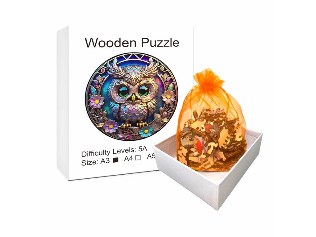 Dopřejte si kombinaci zábavy, umění a vzdělání s naším dřevěným puzzle Sova. Každý kus je pečlivě vyřezáván laserem do přesných tvarů, které přinášejí nejen radost ze skládání, ale i krásnou dekoraci pro váš domov. S rozměry 28 x 28 cm se tyto puzzle stávají okamžitě výrazným kouskem ve vašem interiéru.