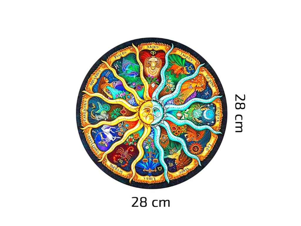 Dopřejte si kombinaci zábavy, umění a vzdělání s naším dřevěným puzzle Znamení zvěrokruhu. Každý kus je pečlivě vyřezáván laserem do přesných tvarů, které přinášejí nejen radost ze skládání, ale i krásnou dekoraci pro váš domov. S rozměry 28x28 cm se tyto puzzle stávají okamžitě výrazným kouskem ve vašem interiéru.